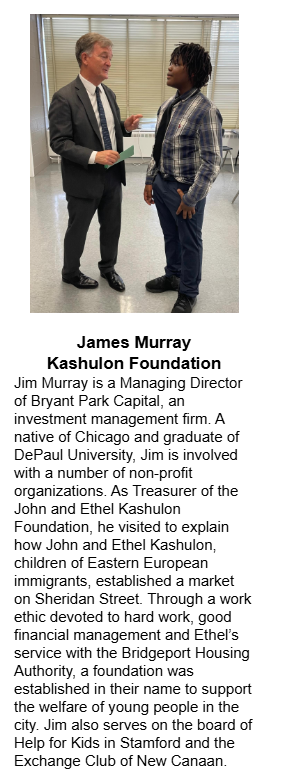 The Covenant School of Bridgeport’s latest newsletter featured a story about a visit by Jim Murray of the Kashulon Foundation, in which he had an opportunity to meet students, faculty and staff members.